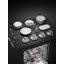 Электронная панель управления может быть кнопочной или сенсорной. Кнопки и индикаторы, которые фиксируют состояние прибора в данный момент времени, располагаются на панели в один или несколько рядов. Кнопочное управление достаточно удобно, однако такая панель менее проста в уходе, так как в зазорах между кнопками и самой панелью может скапливаться грязь и жир. Кнопочная электронная панель управления может оснащаться цифровым дисплеем, на который выводится информация о режиме мойки, оставшемся времени и т. д. Наиболее удобны и информативны сенсорные панели управления с большими дисплеями, к тому же за ними легче ухаживать.