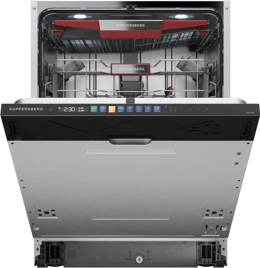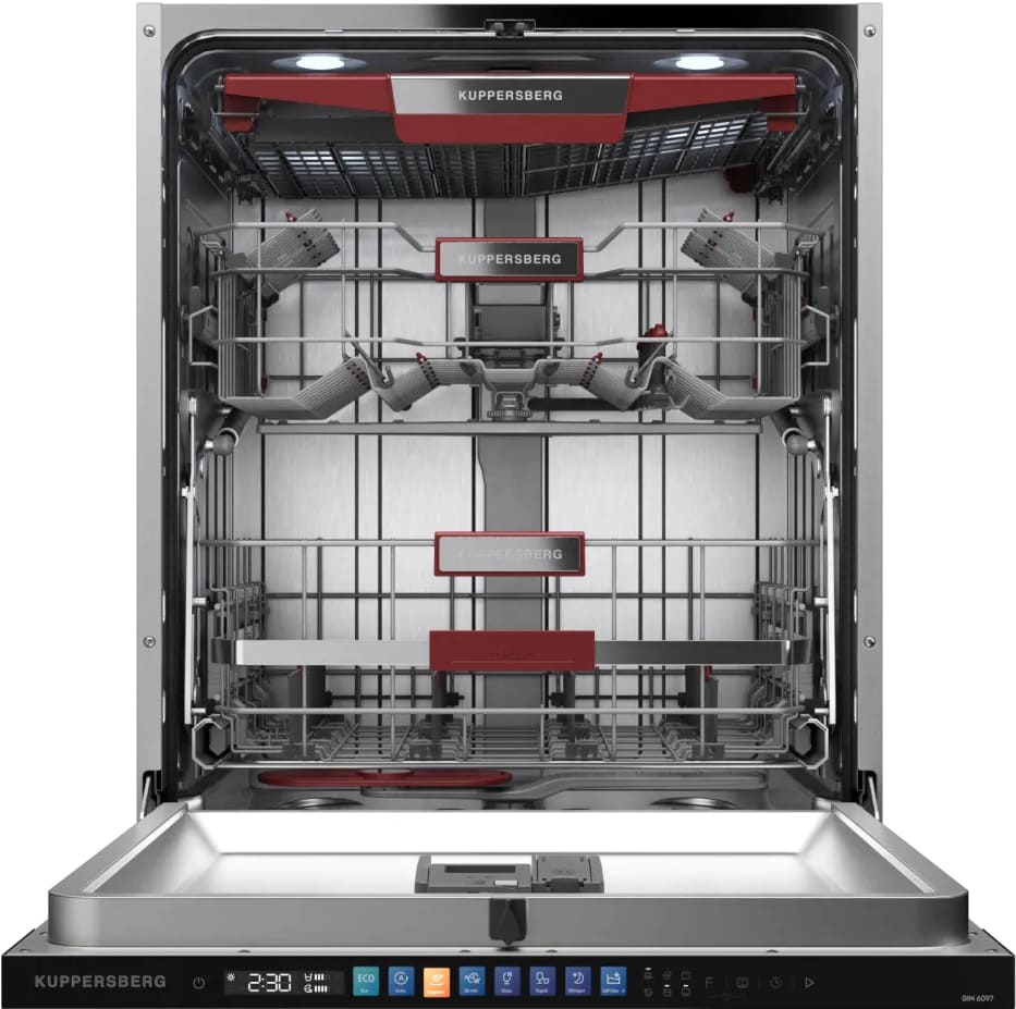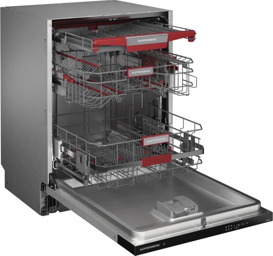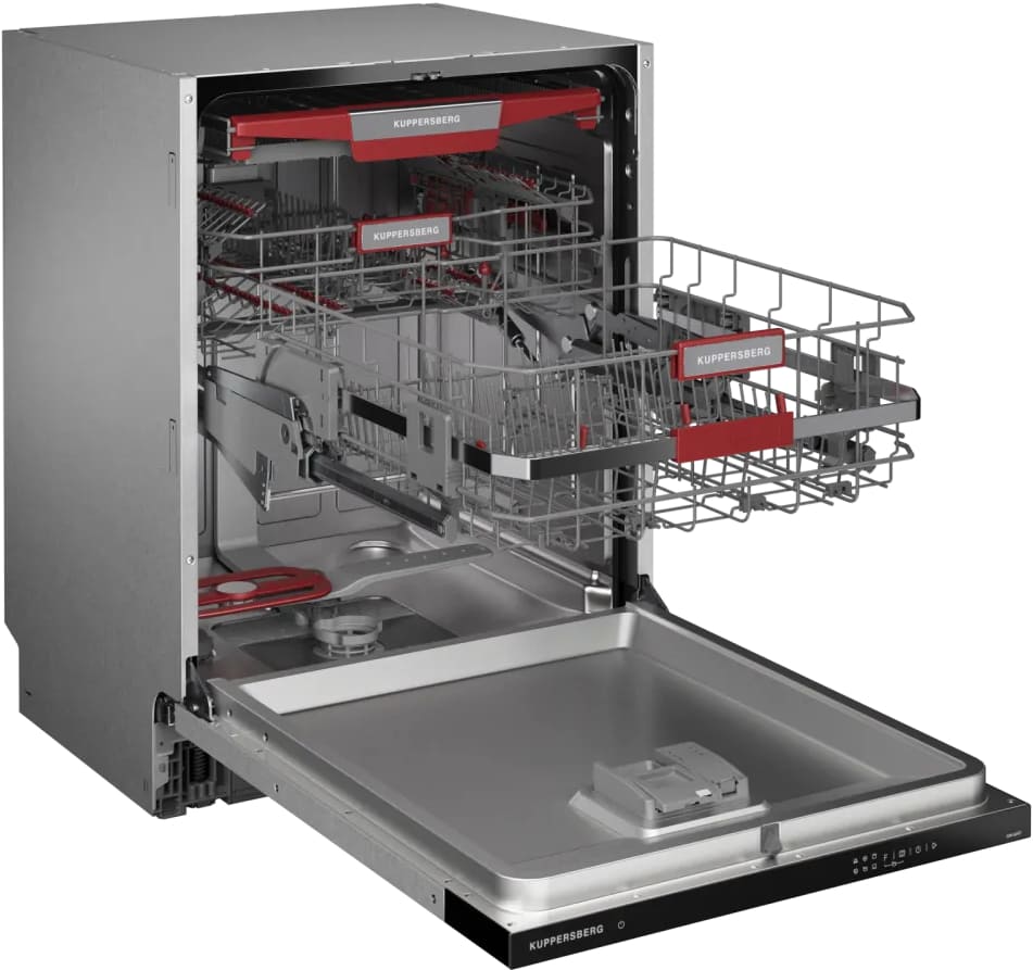 Встраиваемая модель Куперсберг отлично впишется в любой интерьер, главное — правильно выбрать место, чтобы подвести коммуникации. Устанавливается в нишу целиком, полностью закрывается декоративной панелью. Обратите внимание: в комплекте не идет фасад, его необходимо установить самостоятельно. Имеет стандартные размеры, поэтому может не поместиться на очень маленькой кухне. В камеру можно загрузить ограниченное число комплектов: 14 шт. Комплектом считается набор посуды на одного человека, который нужен для полноценного приема пищи: глубокая и плоская тарелки, тарелка для салата, блюдце под чашку, сама чашка, ложка и вилка.