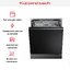 Электронная панель управления может быть кнопочной или сенсорной. Кнопки и индикаторы, которые фиксируют состояние прибора в данный момент времени, располагаются на панели в один или несколько рядов. Кнопочное управление достаточно удобно, однако такая панель менее проста в уходе, так как в зазорах между кнопками и самой панелью может скапливаться грязь и жир. Кнопочная электронная панель управления может оснащаться цифровым дисплеем, на который выводится информация о режиме мойки, оставшемся времени и т. д. Наиболее удобны и информативны сенсорные панели управления с большими дисплеями, к тому же за ними легче ухаживать.