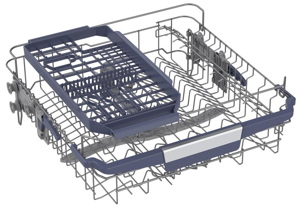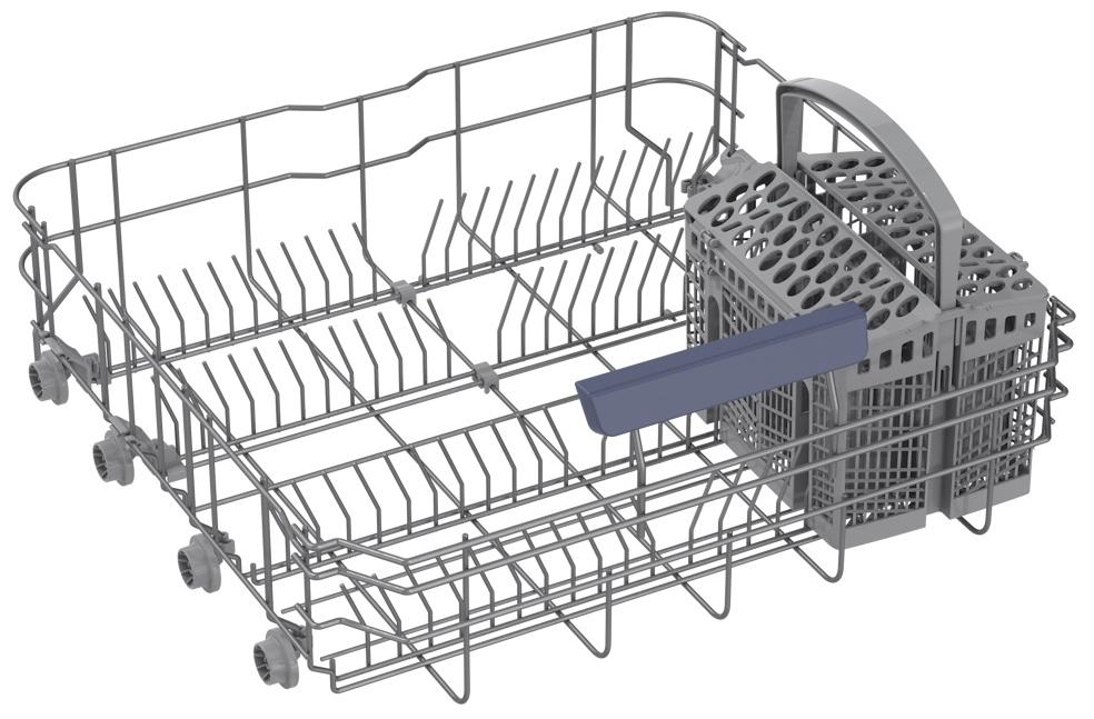 Корзина для столовых приборов — один из обязательных аксессуаров, которыми оснащается любая посудомоечная машина. Она представляет собой сетчатый пластиковый органайзер, в котором устанавливаются в вертикальном положении ложки, ножи и вилки. Корзина, как правило, разделяется на отдельные отсеки, в каждый из которых можно поместить один или несколько предметов. Зачастую сверху она закрывается специальной крышкой, которая также служит для разделения приборов, способствуя более тщательному их мытью.