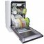 Благодаря встроенной подсветки внутри камеры нет необходимости включать свет на кухне для загрузки или выгрузки предметов. Камера посудомоечной машины выполнена из нержавеющей стали, которая устойчива к образованию коррозии, а также длительному воздействию воды и различных температур. Модель полностью встраивается в кухонный гарнитур. Это значит, что корпус закрывается мебельным фасадом и устройство никак не выделяется в гарнитуре, что позволяет установить прибор и в готовые решения и в любые дизайнерские интерьеры. Режим половинной загрузки расширяет функциональные возможности посудомоечной машины. При небольшом количестве имеющейся посуды устройство тратит меньше воды и электроэнергии.
