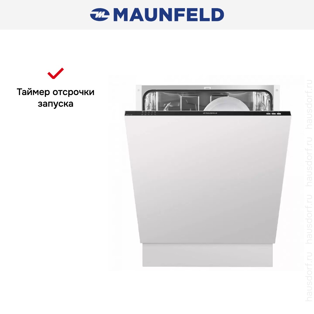 Встраиваемая посудомоечная машина MAUNFELD MLP12I оптимальна для повседневного использования. Данная модель встраивается в кухонный шкафчик и практически не видна за фасадом кухонной мебели. В посудомоечной машинке Маунфилд предусмотрены пять основных режимов, которые позволяют использовать ее как для легкого споласкивания таки для очищения посуды от сложных загрязнений. Особенности работы и конструкции прибора: