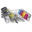 Корзина для столовых приборов достаточно высока, ввиду чего она устанавливается в нижнем коробе, где для нее предусматривается специальное место между разделителями для тарелок. Приборы в корзине могут размещаться как вниз, так и вверх рукоятками — это зависит от количества приборов и требований пользователя. Однако острые предметы — ножи или вилки — необходимо размещать острием вниз для предотвращения травм. Ножи рекомендуется размещать в корзинах с осторожностью, поскольку лезвия из керамики, например, могут затупиться. Чтобы избежать этого, следует использовать фирменные моющие средства и обязательно располагать ножи по отдельности, чтобы они не соприкасались с другими предметами.