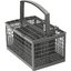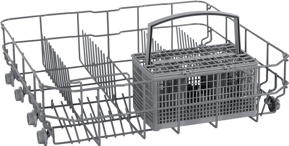 Корзина для столовых приборов — один из обязательных аксессуаров, которыми оснащается любая посудомоечная машина. Она представляет собой сетчатый пластиковый органайзер, в котором устанавливаются в вертикальном положении ложки, ножи и вилки. Корзина, как правило, разделяется на отдельные отсеки, в каждый из которых можно поместить один или несколько предметов. Зачастую сверху она закрывается специальной крышкой, которая также служит для разделения приборов, способствуя более тщательному их мытью.