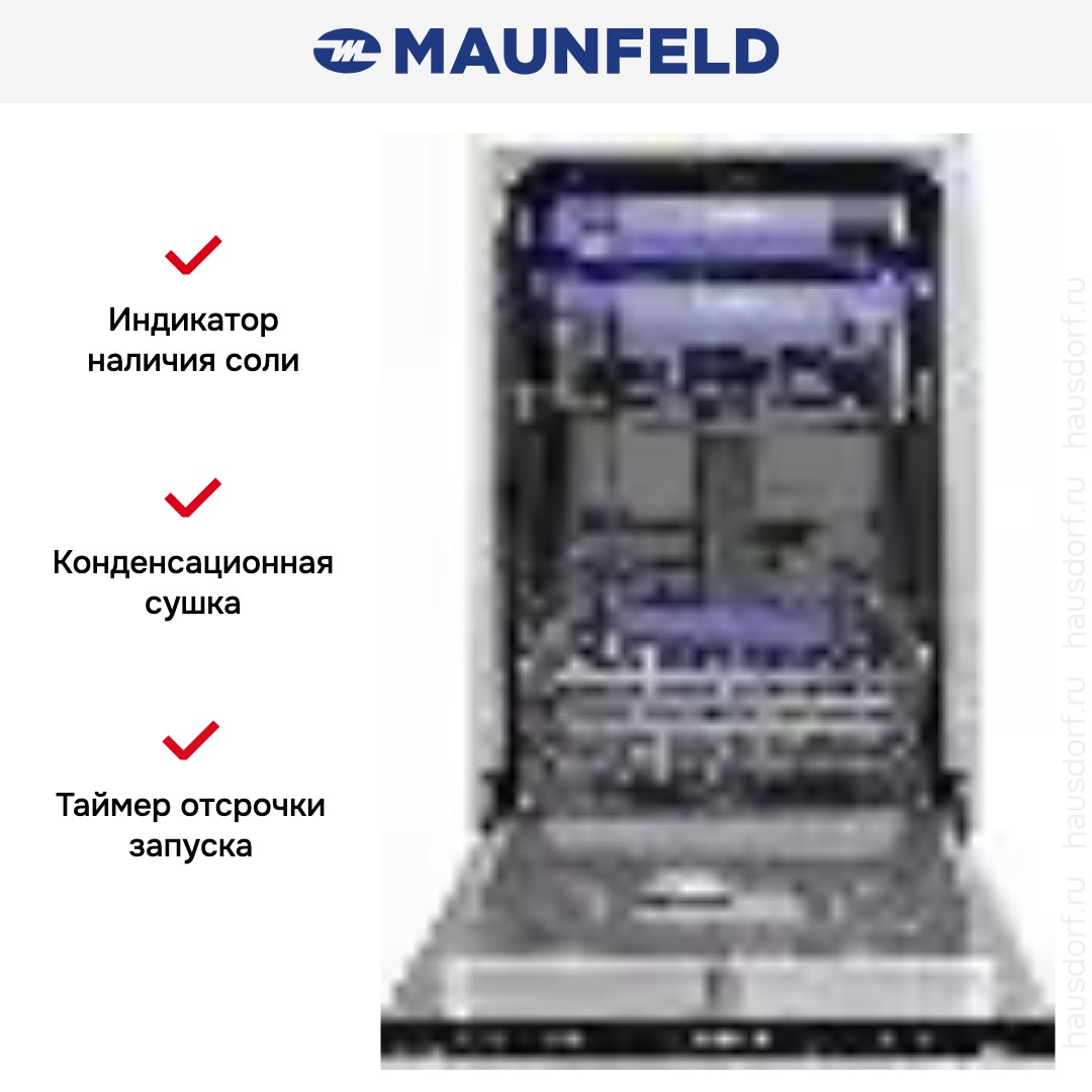 Встраиваемая посудомоечная машина Maunfeld MLP-08IMROI сочетает узкий корпус и продуманную эргономику, что делает её идеальным решением для компактных кухонь. При ширине 44.8 см и глубине 55 см прибор занимает минимум места, при этом встраивание выполняется полностью, а фасад может быть выполнен под ваш кухонный шкаф. Ниша 82×45×55 см обеспечивает простую установку и аккуратный внешний вид после монтажа. Высота 81.5 см подходит под стандартные столешницы, поэтому устройство легко интегрируется в готовую мебель.