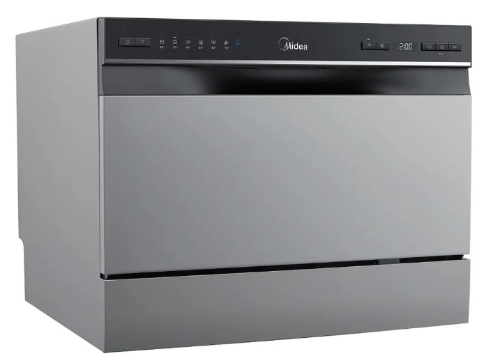 Отдельностоящая модель Мидеа отлично впишется в кухонный интерьер, главное — правильно выбрать место, чтобы подвести коммуникации. Компактные размеры позволяют разместить ее даже на очень маленькой кухне. В камеру можно загрузить ограниченное число комплектов: 6 шт. Комплектом считается набор посуды на одного человека, который нужен для полноценного приема пищи: глубокая и плоская тарелки, тарелка для салата, блюдце под чашку, сама чашка, ложка и вилка.