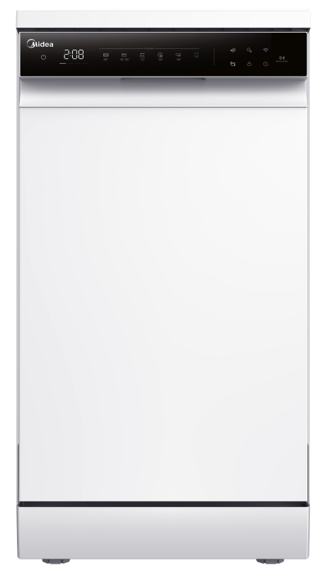 Отдельностоящая модель Мидеа отлично впишется в кухонный интерьер, главное — правильно выбрать место, чтобы подвести коммуникации. Имеет уменьшенную ширину — благодаря этому поместится даже на очень маленькой кухне. В камеру можно загрузить ограниченное число комплектов: 10 шт. Комплектом считается набор посуды на одного человека, который нужен для полноценного приема пищи: глубокая и плоская тарелки, тарелка для салата, блюдце под чашку, сама чашка, ложка и вилка.
