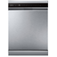 Ширина полноразмерных устройств вместимостью до 14-15 комплектов посуды варьируется в пределах от 55 до 60 см. Они представлены у всех ведущих производителей бытовой техники в широком ассортименте. Встроенные устройства могут размещаться в стандартной кухонной тумбе — при этом панель управления будет закрыта, отдельно стоящие с открытой панелью управления можно установить автономно или в нишу.