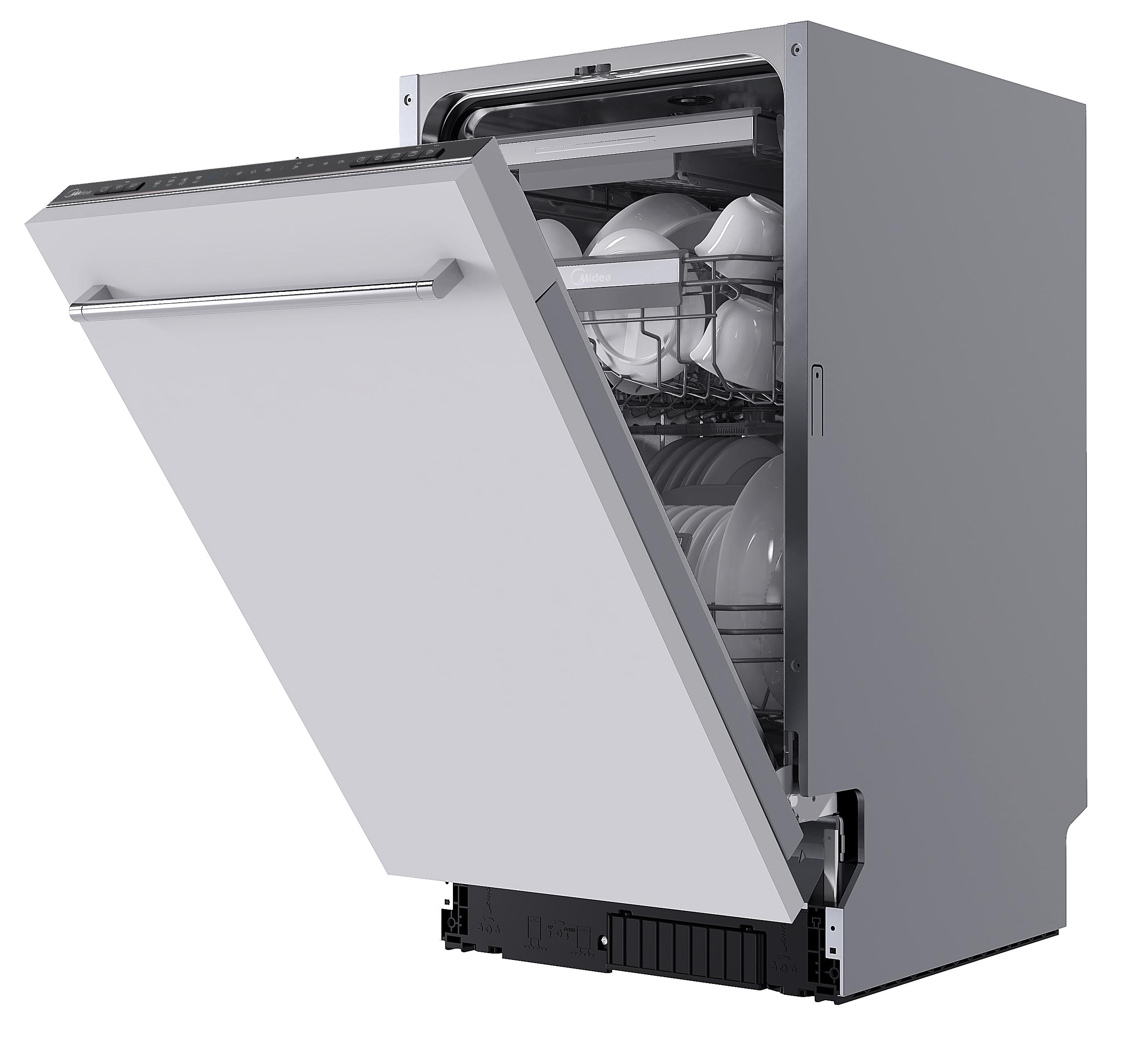 Узкие посудомоечные машины отличает ширина от 44,5 до 45 см при стандартных высоте и глубине и, соответственно, меньшая вместимость, не превышающая 10 комплектов посуды. Обычно это приборы встраиваемого типа, которые легко устанавливаются в узкую мебельную тумбу. Компактные устройства значительно меньше полноразмерных по высоте, а по своей ширине практически от них не отличаются — она составляет от 55 до 60 см. Вместимость подобных небольших машин встраиваемого и отдельно стоящего типа — 4-6 комплектов посуды.