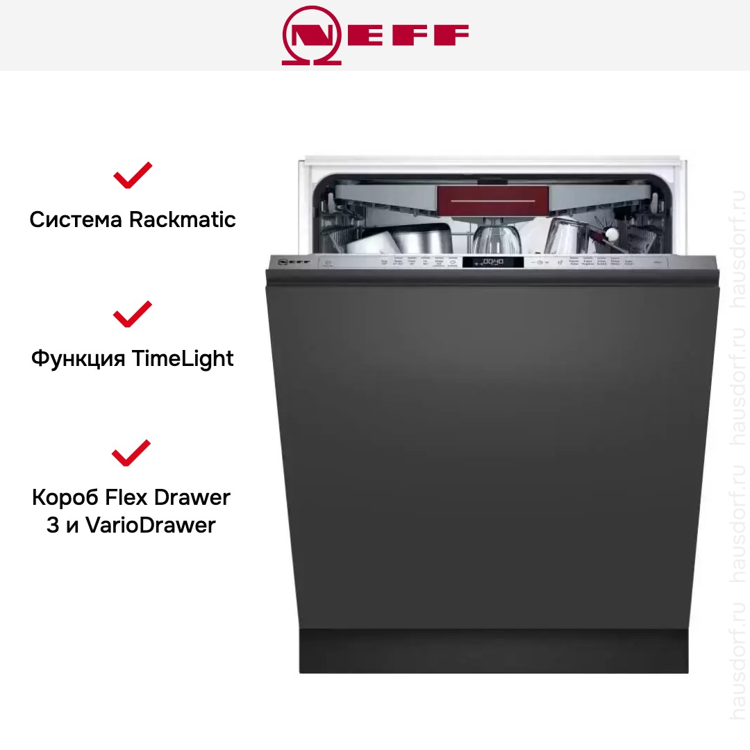 Встраиваемая посудомоечная машина Neff S157HCX10R с энергоэфективностью класса А и вместимостью до 14 комплектов посуды, отличает надежность и долговечность. Приложение Home Connect помогает удаленно управлять прибором голосовым набором, обновлять программное обеспечение, при неисправностях есть возможность подключения к дистанционному сервису.