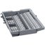Столовые приборы и другие кухонные принадлежности располагаются в нем в горизонтальном положении: так они занимают гораздо меньше места, чем в обычных корзинах, которые устанавливаются в нижнем коробе. Высота этого лотка может составить до 5 см: таким образом, в нем можно разместить не только ножи, вилки и ложки, но и кофейные или чайные чашки, лопатки, большие разливные ложки, многоразовые пробки для бутылок, воронки, терки и прочую подобную утварь. Для фиксации мелких вещей служат специальные боковые держатели.