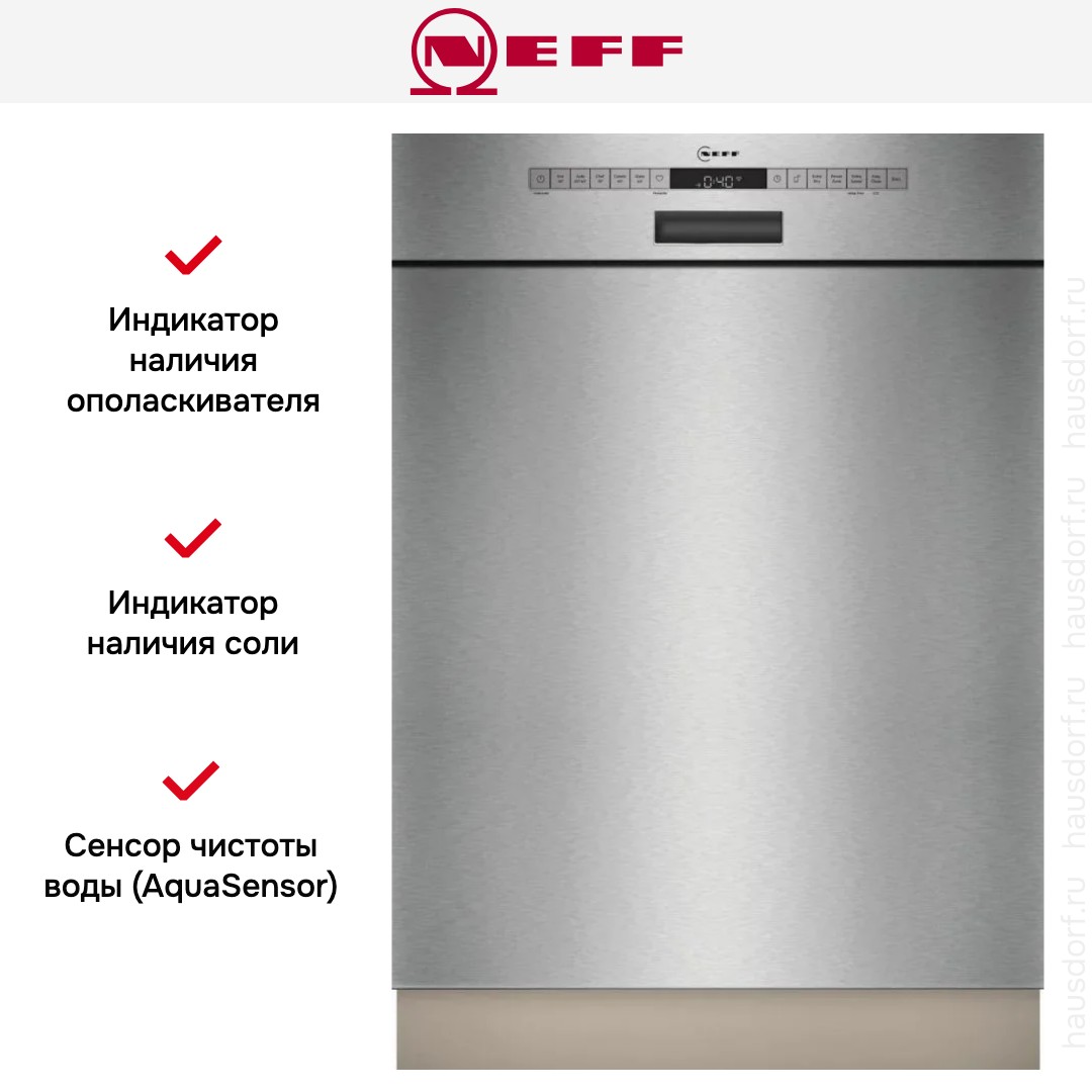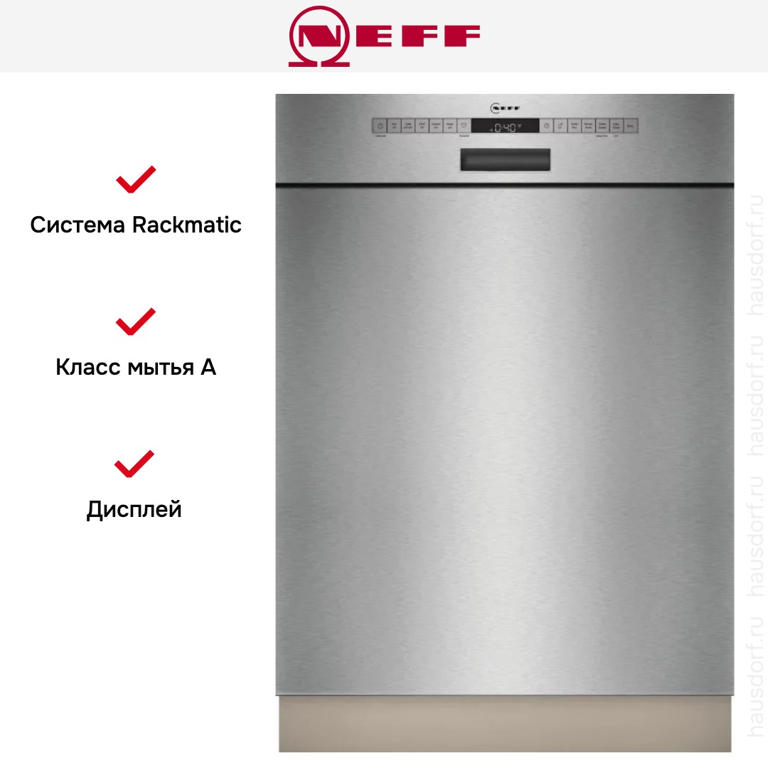 Встраиваемая модель Нефф отлично впишется в любой интерьер, главное — правильно выбрать место, чтобы подвести коммуникации. Обратите внимание: в комплекте не идет фасад, его необходимо установить самостоятельно. Устанавливается в нишу неполностью, остается открытой панель управления. Имеет стандартные размеры, поэтому может не поместиться на очень маленькой кухне. В камеру можно загрузить ограниченное число комплектов: 14 шт. Комплектом считается набор посуды на одного человека, который нужен для полноценного приема пищи: глубокая и плоская тарелки, тарелка для салата, блюдце под чашку, сама чашка, ложка и вилка.