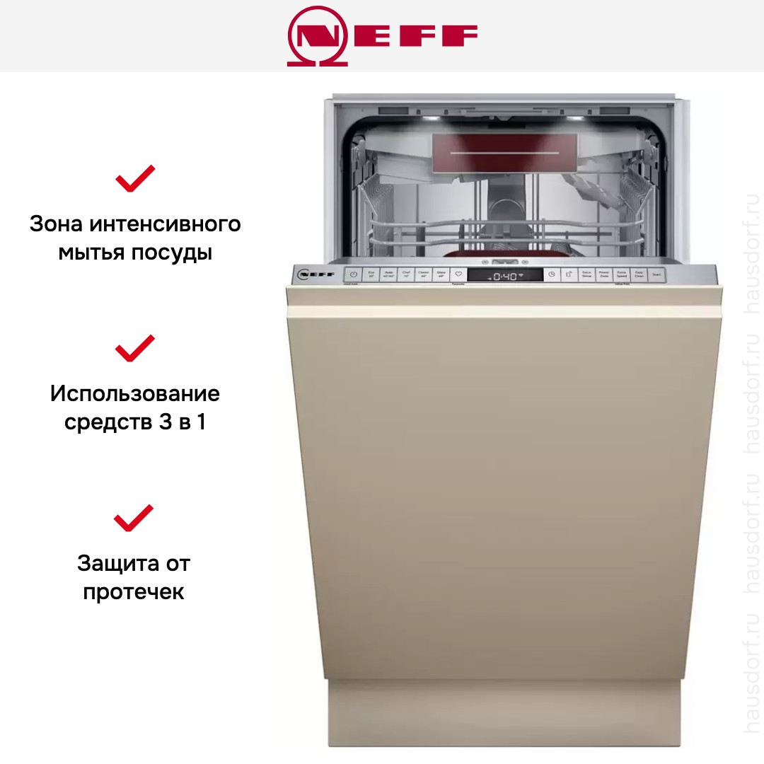Посудомоечная машина Neff S857ZMX03E представляет собой полностью встраиваемый узкий прибор, который идеально вписывается в нишу от 81.5 до 87.5 см по высоте. Ее компактные габариты 81.5×44.8×55 см позволяют экономить место на кухне, не жертвуя вместимостью до 10 комплектов посуды. Лицевая панель монтируется под ваш фасад, а серебристая панель управления элегантно смотрится при открытом дверном полотне. Внутренняя камера из нержавеющей стали устойчива к коррозии и сохраняет опрятный вид даже при частом использовании.