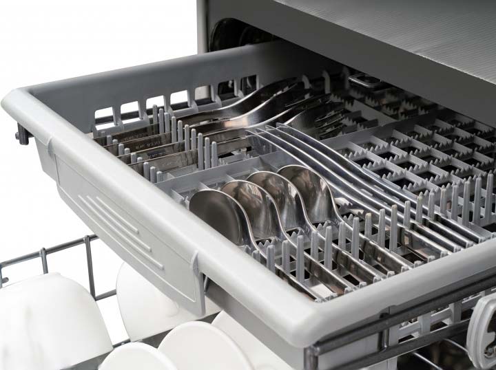 Полноразмерные модели выбирают в больших семьях, а также те, кто много готовит или часто принимает гостей. Их вместимость может составить до 15 комплектов посуды, а габаритные размеры соответствуют размерам стандартной кухонной мебели шириной и глубиной 60 см и высотой 82-85 см. Они выпускаются как во встраиваемом, так и в отдельностоящем варианте: во втором случае для установки понадобится достаточно много места. Как правило, полноразмерные приборы отличаются большим набором стандартных и специальных программ мойки, а также дополнительных опций: в частности, они оснащаются третьей корзиной для мытья столовых приборов.