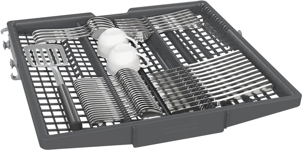 Как правило, полки для столовых приборов находятся в верхней корзине — таким образом, чтобы под ними можно было расположить, например, небольшие чашки. Часто полки оснащаются специальными разделителями, которые позволяют зафиксировать любой предмет, чтобы он не мог случайно сдвинуться с перекрыть доступ к соседним. В ряде моделей для столовых приборов предусматриваются большие полки, которые размещаются на третьем уровне. Такая конструкция считается оптимальной, так как освобождается место в корзинах для более крупных предметов. Такие полки достигают в высоту 5 см, так что на них можно размещать не только обычные ножи, ложки или вилки, но и более объемные половники, шумовки, лопатки, терки и другую подобную утварь.