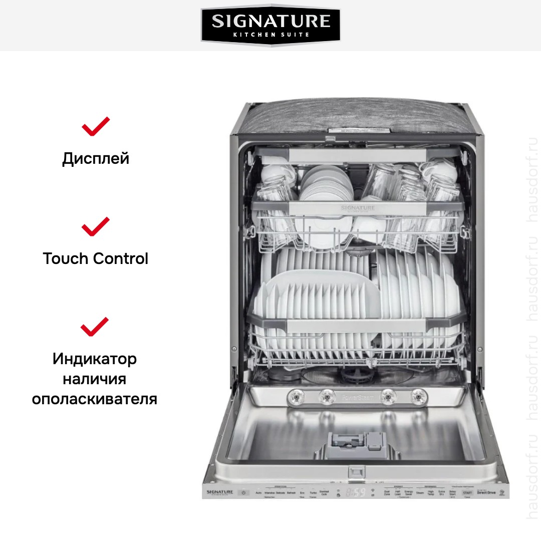 Встраиваемая модель Сигначе Китчен Сьют отлично впишется в любой интерьер, главное — правильно выбрать место, чтобы подвести коммуникации. Устанавливается в нишу целиком, полностью закрывается декоративной панелью. Обратите внимание: в комплекте не идет фасад, его необходимо установить самостоятельно. Имеет стандартные размеры, поэтому может не поместиться на очень маленькой кухне. В камеру можно загрузить ограниченное число комплектов: 14 шт. Комплектом считается набор посуды на одного человека, который нужен для полноценного приема пищи: глубокая и плоская тарелки, тарелка для салата, блюдце под чашку, сама чашка, ложка и вилка.