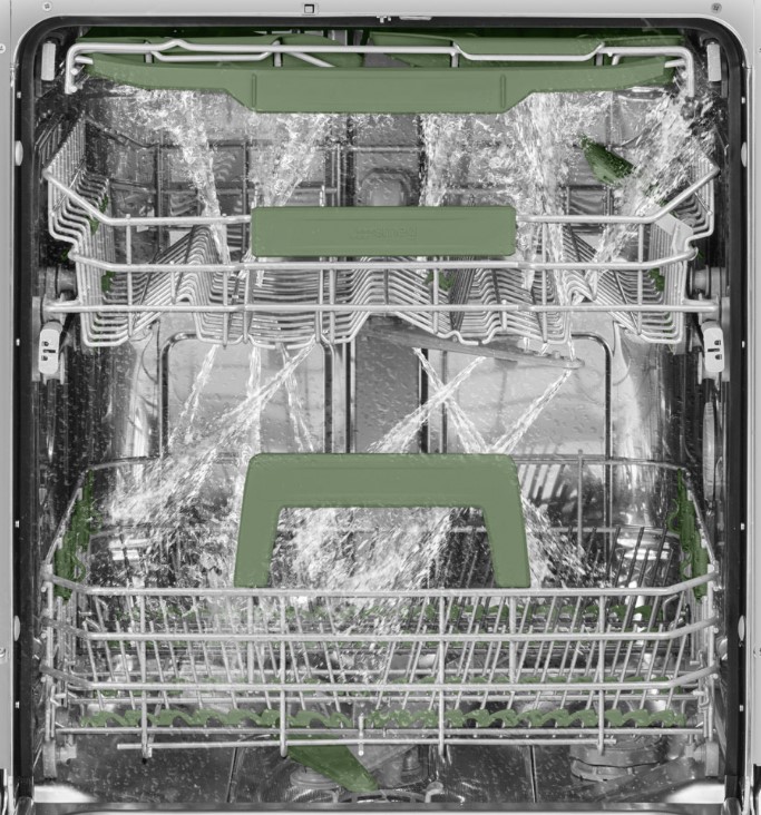Система ополаскивания и автоматической промывки фильтров, которая предотвращает засоры. Благодаря этому засохшие загрязнения или не убранные перед мойкой кусочки пищи не забивают слив.