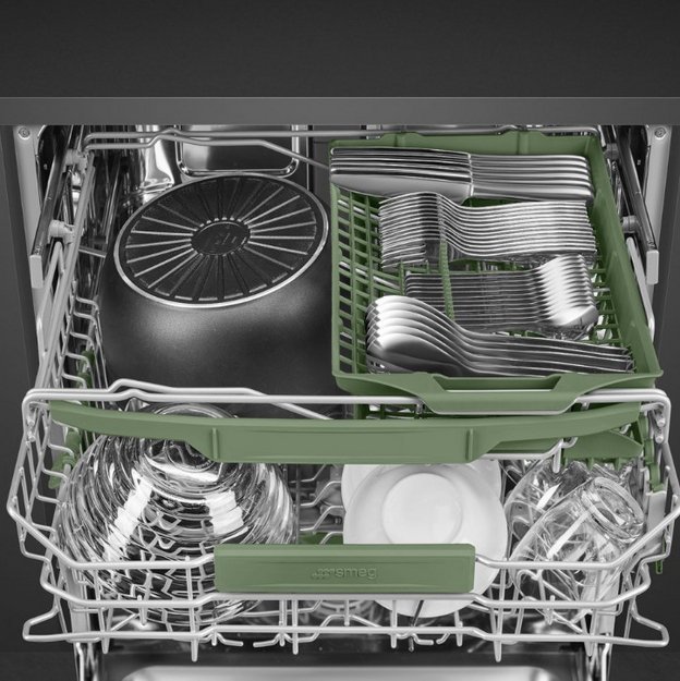 Встраиваемая модель Смег отлично впишется в любой интерьер, главное — правильно выбрать место, чтобы подвести коммуникации. Устанавливается в нишу целиком, полностью закрывается декоративной панелью. Обратите внимание: в комплекте не идет фасад, его необходимо установить самостоятельно. Имеет стандартные размеры, поэтому может не поместиться на очень маленькой кухне. В камеру можно загрузить ограниченное число комплектов: 13 шт. Комплектом считается набор посуды на одного человека, который нужен для полноценного приема пищи: глубокая и плоская тарелки, тарелка для салата, блюдце под чашку, сама чашка, ложка и вилка.
