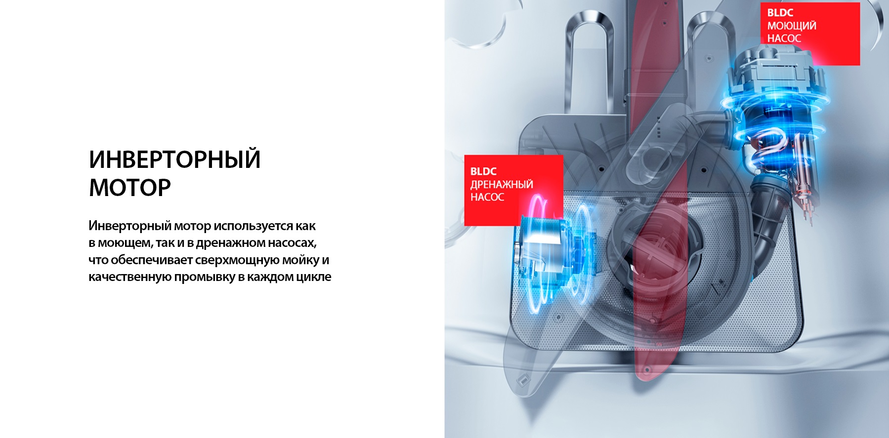 Сердце этой модели — комплекс инновационных функций, которые выводят процесс ухода за посудой на качественно новый уровень. Главная гордость устройства — система перекрестного мытья 720°. В отличие от стандартных систем, здесь реализован принцип двойного противовращения разбрызгивателей. Струи воды, движущиеся навстречу друг другу под тщательно выверенными углами, создают эффект всестороннего «омывания». Это решение исключает появление «слепых зон» в камере. Даже если вы максимально плотно загрузили корзины, вода эффективно проникает в углубления чаш, между тарелками и в другие труднодоступные участки, гарантируя, что даже самые стойкие загрязнения будут удалены без следа.