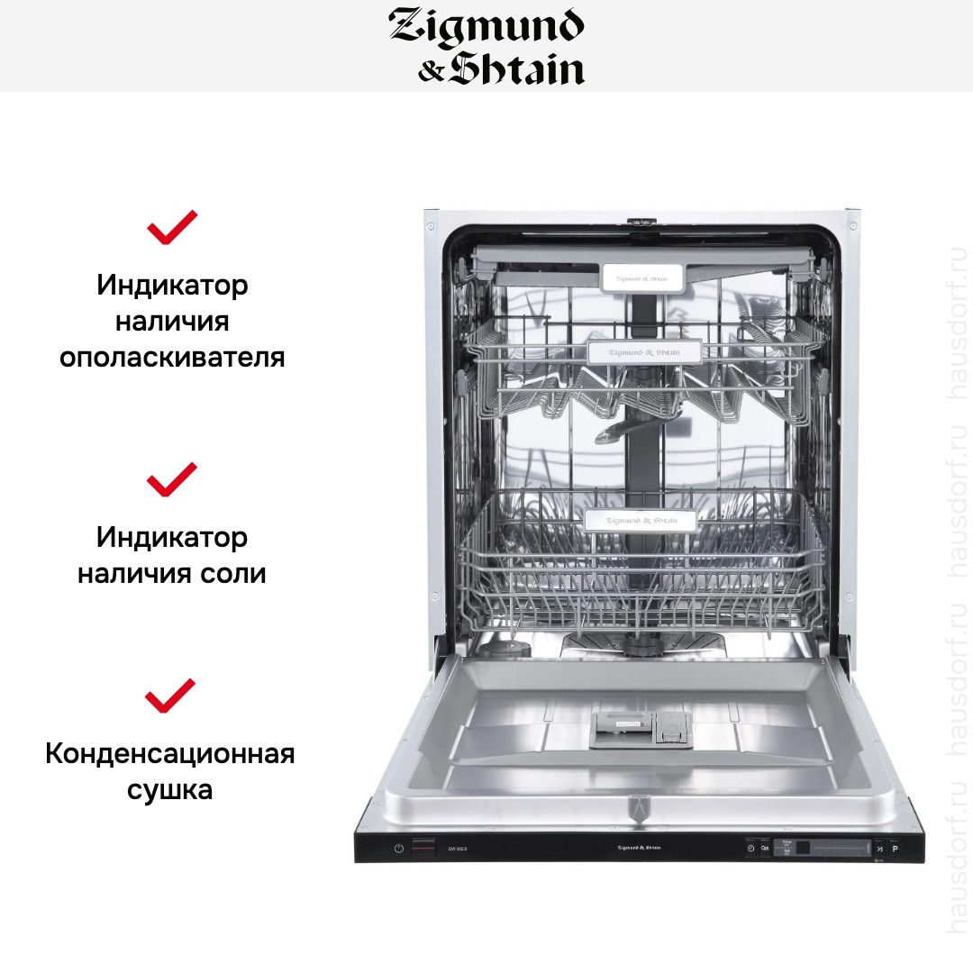 Встраиваемая модель Зигмунд Штайн отлично впишется в любой интерьер, главное — правильно выбрать место, чтобы подвести коммуникации. Устанавливается в нишу целиком, полностью закрывается декоративной панелью. Обратите внимание: в комплекте не идет фасад, его необходимо установить самостоятельно. Имеет стандартные размеры, поэтому может не поместиться на очень маленькой кухне. В камеру можно загрузить ограниченное число комплектов: 14 шт. Комплектом считается набор посуды на одного человека, который нужен для полноценного приема пищи: глубокая и плоская тарелки, тарелка для салата, блюдце под чашку, сама чашка, ложка и вилка.