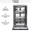 Узкие посудомоечные машины при стандартной высоте около 85 см и глубине 60 см имеют небольшую ширину порядка 45 см. Эти устройства выпускаются в основном во встраиваемом варианте. Их выбирают для установки в малометражных кухнях, для небольших семей из двух-трех человек, а также в случае, если пользователи нечасто готовят дома. Вместимость узких машин может составить от 5 до 10 комплектов посуды, а по своему функционалу, классу мытья, разнообразию типов сушки они постепенно приближаются к полноразмерным моделям. Компактные модели рассчитаны на одного-двух человек. Их высота составляет всего 45 см, а ширина и глубина достигают 50-55 см. Вместимость подобных устройств не превышает 3-6 стандартных комплектов посуды. Производители предлагают как встраиваемые, так и отдельностоящие модели таких посудомоек: вторые обычно выделяют в отдельную категорию настольных. Они уступают узким и полноразмерным не только по вместимости, но и по набору функций, который включает, как правило, несколько стандартных программ.