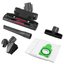 Фиолетовый пылесос можно ставить горизонтально и вертикально. Телескопическая трубка увеличивает длину шланга и расширяет площадь уборки. В комплекте 2 фильтра Electrobag, 3 сменных пылесборника — при сохранении высокой мощности всасывания прибор удаляет даже мельчайшие частицы.