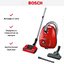 Пылесос Bosch BGBS4PET1 имеет стандартную конфигурацию — корпус на колесах, крепящийся к нему шланг с трубками-удлинителями и насадками. Данная модель рассчитана только на сухую уборку, которой достаточно для большинства пользователей. Мощный поток воздуха позволяет быстро всасывать как мелкие, так и крупные частицы, волосы и шерсть. Основной цвет прибора — красный. Пылесборник-мешок — привычный вариант, с которым легко работать, можно не беспокоиться о чрезмерном расходе электроэнергии. Он тщательно запирает внутри крупную пыль, но может незначительно пропускает очень мелкие частицы. Объем заполнения пылесборника — 4 л.