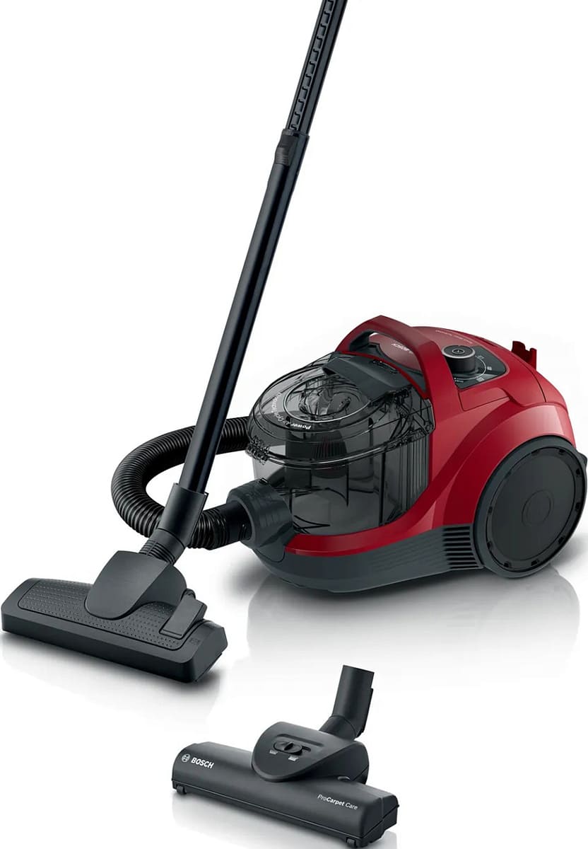 Пылесос Bosch BGC21X350 имеет стандартную конфигурацию — корпус на колесах, крепящийся к нему шланг с трубками-удлинителями и насадками. Данная модель рассчитана только на сухую уборку, которой достаточно для большинства пользователей. Мощный поток воздуха позволяет быстро всасывать как мелкие, так и крупные частицы, волосы и шерсть. Основной цвет прибора — красный. В качестве пылесборника производитель установил стандартный контейнер. Пользоваться им легко и удобно: чтобы очистить, просто достаньте его и высыпьте все в мусорное ведро, а затем протрите или вымойте емкость изнутри. Объем заполнения пылесборника — 2 л.