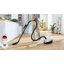 Пылесос Bosch BGL38WH2 имеет стандартную конфигурацию — корпус на колесах, крепящийся к нему шланг с трубками-удлинителями и насадками. Данная модель рассчитана только на сухую уборку, которой достаточно для большинства пользователей. Мощный поток воздуха позволяет быстро всасывать как мелкие, так и крупные частицы, волосы и шерсть. Основной цвет прибора — белый. Пылесборник-мешок — привычный вариант, с которым легко работать, можно не беспокоиться о чрезмерном расходе электроэнергии. Он тщательно запирает внутри крупную пыль, но может незначительно пропускает очень мелкие частицы. Объем заполнения пылесборника — 4 л.