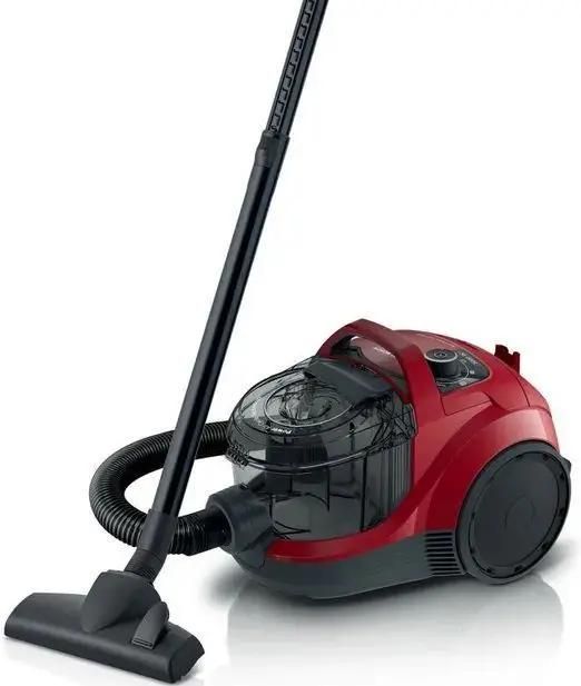 Пылесос Bosch BGS21WX200 имеет стандартную конфигурацию — корпус на колесах, крепящийся к нему шланг с трубками-удлинителями и насадками. Данная модель рассчитана только на сухую уборку, которой достаточно для большинства пользователей. Мощный поток воздуха позволяет быстро всасывать как мелкие, так и крупные частицы, волосы и шерсть. Основной цвет прибора — красный. В качестве пылесборника производитель установил стандартный контейнер. Пользоваться им легко и удобно: чтобы очистить, просто достаньте его и высыпьте все в мусорное ведро, а затем протрите или вымойте емкость изнутри. Объем заполнения пылесборника — 2 л.