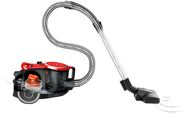 Циклонный фильтр — это усовершенствованный контейнер. Имеет форму обрезанного конуса — благодаря такому устройству воздух двигается циклически, заставляя мусор оседать внизу емкости за счет центробежной силы. Уже очищенный, воздушный поток выходит из пылесоса обратно. Обычно такая форма пылесборника соседствует с несколькими фильтрами, в том числе HEPA.