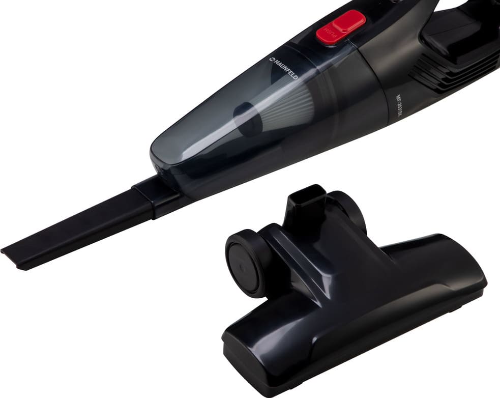 Пылесос Maunfeld MF-2031BK — компактный, но высокопроизводительный вертикальный агрегат, разработанный для быстрой и эффективной сухой уборки в условиях современного жилья. Несмотря на миниатюрные габариты (101×23×16 см) и рекордно лёгкий вес всего 1,2 кг, он демонстрирует впечатляющую силу всасывания — 180 Вт при общей мощности мотора 600 Вт. Такое сочетание обеспечивает тщательное удаление пыли, шерсти, крошек, песка и другого мелкого мусора даже с труднодоступных участков, не требуя многократных проходов.