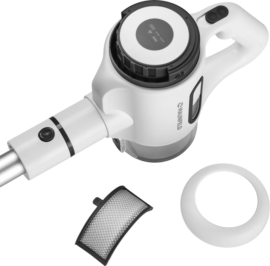 Вертикальный пылесос Maunfeld MF-2034BK PRO отличается высокой ручкой с насадкой, благодаря которой не нужно наклоняться во время уборки, а также компактным корпусом. Данная модель рассчитана только на сухую уборку, которой достаточно для большинства пользователей. Мощный поток воздуха позволяет быстро всасывать как мелкие, так и крупные частицы, волосы и шерсть. Основной цвет прибора — черный. В качестве пылесборника производитель установил стандартный контейнер. Пользоваться им легко и удобно: чтобы очистить, просто достаньте его и высыпьте все в мусорное ведро, а затем протрите или вымойте емкость изнутри. Объем заполнения пылесборника — 0.65 л.