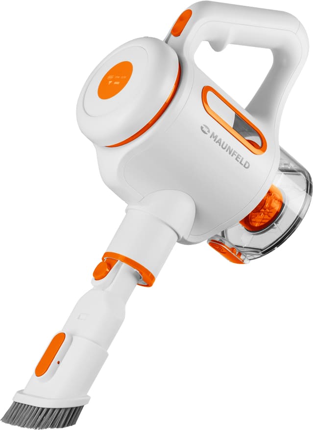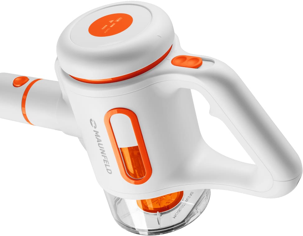 Вертикальный пылесос Maunfeld MF-2034OR PRO отличается высокой ручкой с насадкой, благодаря которой не нужно наклоняться во время уборки, а также компактным корпусом. Данная модель рассчитана только на сухую уборку, которой достаточно для большинства пользователей. Мощный поток воздуха позволяет быстро всасывать как мелкие, так и крупные частицы, волосы и шерсть. Основной цвет прибора — оранжевый. В качестве пылесборника производитель установил стандартный контейнер. Пользоваться им легко и удобно: чтобы очистить, просто достаньте его и высыпьте все в мусорное ведро, а затем протрите или вымойте емкость изнутри. Объем заполнения пылесборника — 0.65 л.