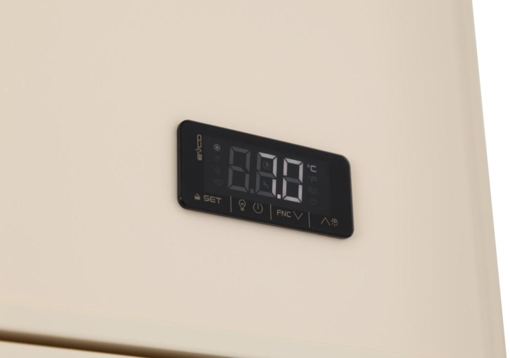 Управление осуществляется с сенсорной панели. На дисплее демонстрируются текущие настройки. Внутреннее освещение обеспечивает дополнительный комфорт при эксплуатации. Светодиоды отличает долговечность работы, отсутствие нагревательного эффекта и низкое потребление электроэнергии. Модель оборудована механическим замком. Данный холодильник гармонично впишется в интерьер современной квартиры или офиса и будет надежным помощником в поддержании красоты и долговечности ваших любимых вещей, а тихая работа не создаст неудобств для пользователей. Устройство содержит озонобезопасный хладагент.