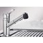 Внутри крана помещается шланг, который можно растянуть, чтобы достать струей воды до второй чаши мойки или тщательно сполоснуть посуду.
