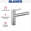 Модель Blanco Alta compact устанавливается привычным способом: на бортик мойки или ванной в предназначенные для этого отверстия (они могут быть вырезаны производителями заранее, но если нет, при достаточной ширине можно добавить их самостоятельно). Гибкая подводка позволяет расположить сантехнику в любом удобном месте, при этом нужно учитывать несколько важных нюансов: для максимальной надежности лучше выбирать сильфонные рукава, нельзя использовать ее вместо стационарного водопровода, только как соединительный элемент для крана.