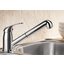Смеситель Blanco Daras-S изготавливается из высококачественной нержавеющей стали с хромированием. Этот материал отличается повышенной прочностью, устойчивостью к воздействию высоких температур, легкостью в уходе. Однорычажная модель очень удобна в использовании: регулировать напор воды можно одной рукой. За смешивание горячей и холодной воды отвечает надежный, долговечный и легко заменяемый керамический картридж. Современный дизайн модели сочетается с компактными размерами. Высота излива составляет всего 11 см, а длина — 21,4 см: он подходит для моек с небольшими чашами. Вымыть посуду любого размера поможет выдвижной излив со шлангом в нейлоновой оплетке. Кроме того, вы без труда сможете наполнять глубокие кастрюли или вазы, а также использовать его вместе с мойкой с двумя чашами. Дополнительное удобство обеспечивает угол поворота излива на 90 градусов. Модель оборудована клапаном, который препятствует попаданию воды обратно в водопровод: благодаря этому напор воды остается постоянным.