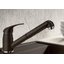 Внутри крана помещается шланг, который можно растянуть, чтобы достать струей воды до второй чаши мойки или тщательно сполоснуть посуду.