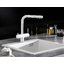 Благодаря особой конструкции вы можете также направить воду из раковины в ванну или из одной чаши мойки в другую одним поворотом крана в нужную сторону. Дополнительная деталь, которая повышает комфорт использования, — аэратор. Он делает поток воды мягче, насыщая его кислородом, таким образом дополнительно уменьшая ее расход: объем струи увеличивается за счет воздуха, а не за счет повышения напора из водопровода. К этой модели можно подключить фильтр для питьевой воды.