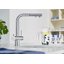 Специальная насадка позволяет выдвинуть излив как маленький шланг и направить струю в слишком высокую кастрюлю, которая не помещается под стационарным краном, на овощи в раковине, на загрязнения в неудобных уголках мойки, которые нужно удалить и т.д. Благодаря особой конструкции вы можете также направить воду из раковины в ванну или из одной чаши мойки в другую одним поворотом крана в нужную сторону. Дополнительная деталь, которая повышает комфорт использования, — аэратор. Он делает поток воды мягче, насыщая его кислородом, таким образом дополнительно уменьшая ее расход: объем струи увеличивается за счет воздуха, а не за счет повышения напора из водопровода. К этой модели можно подключить фильтр для питьевой воды.