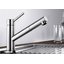Внутри крана помещается шланг, который можно растянуть, чтобы достать струей воды до второй чаши мойки или тщательно сполоснуть посуду.