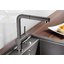 Внутри крана помещается шланг, который можно растянуть, чтобы достать струей воды до второй чаши мойки или тщательно сполоснуть посуду.