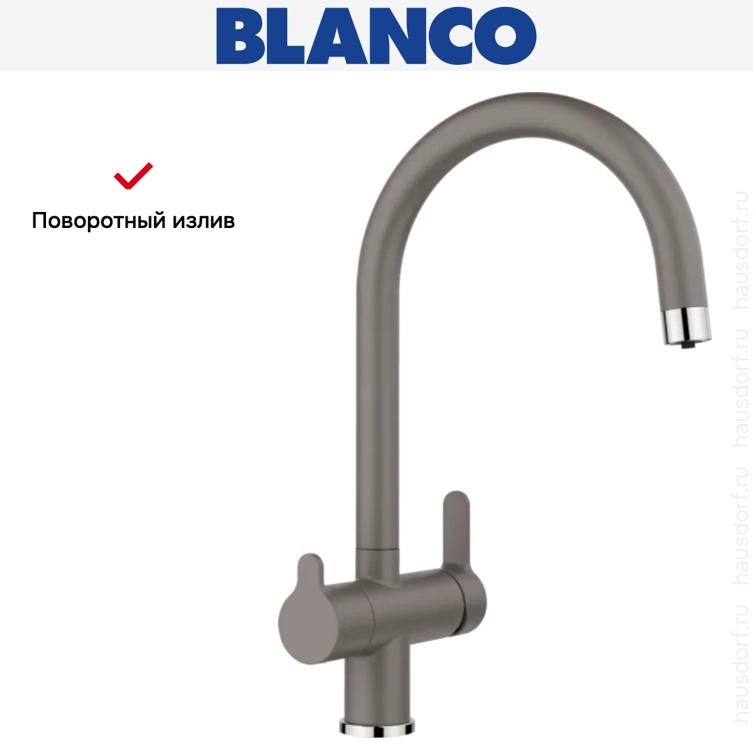 Смеситель Бланко — отличный выбор для кухни и ванной комнаты. Классический вариант с двумя вентилями подойдет большинству пользователей: нужно настраивать напор и температуру воды из «горячей» и «холодной трубы» отдельно, поток смешивается внутри крана и на выходе имеет оптимальную температуру. Благодаря запорному механизму в виде керамических пластин такой смеситель прослужит много лет, так как в нем отсутствуют быстро стирающиеся прокладки; также на клапане практически не образуется накипь. При повороте ручки диски внутри смещаются относительно друг друга — открывают или блокируют воду.