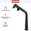 Габариты изделия (28,7×5×33,4 см) подчёркивают его вытянутую, но компактную форму. Несмотря на внушительные параметры, модель сохраняет визуальную лёгкость благодаря узкому профилю и строгим линиям. Матовое чёрное покрытие придаёт смесителю современный, почти архитектурный вид, устойчивый к отпечаткам пальцев, царапинам и следам воды, что значительно упрощает уход и сохраняет безупречный внешний вид на долгие годы.