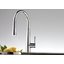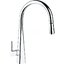 Выдвижной излив в кухонном смесителе — это гибкая трубка из резины в металлической оплетке, расположенная внутри основного излива. Для того, чтобы воспользоваться гибким изливом — например, наполнить высокую посуду, — достаточно включить воду и потянуть за головку, находящуюся на конце трубки.