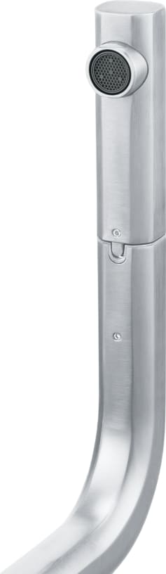 Специальная насадка позволяет выдвинуть излив как маленький шланг и направить струю в слишком высокую кастрюлю, которая не помещается под стационарным краном, на овощи в раковине, на загрязнения в неудобных уголках мойки, которые нужно удалить и т.д. Благодаря особой конструкции вы можете также направить воду из раковины в ванну или из одной чаши мойки в другую одним поворотом крана в нужную сторону. Дополнительная деталь, которая повышает комфорт использования, — аэратор. Он делает поток воды мягче, насыщая его кислородом, таким образом дополнительно уменьшая ее расход: объем струи увеличивается за счет воздуха, а не за счет повышения напора из водопровода.