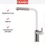Специальная насадка позволяет выдвинуть излив как маленький шланг и направить струю в слишком высокую кастрюлю, которая не помещается под стационарным краном, на овощи в раковине, на загрязнения в неудобных уголках мойки, которые нужно удалить и т.д. Благодаря особой конструкции вы можете также направить воду из раковины в ванну или из одной чаши мойки в другую одним поворотом крана в нужную сторону. Дополнительная деталь, которая повышает комфорт использования, — аэратор. Он делает поток воды мягче, насыщая его кислородом, таким образом дополнительно уменьшая ее расход: объем струи увеличивается за счет воздуха, а не за счет повышения напора из водопровода.