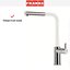 Внутри крана помещается шланг, который можно растянуть, чтобы достать струей воды до второй чаши мойки или тщательно сполоснуть посуду.