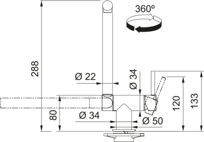 - Угол поворота излива: меньше на 210 °